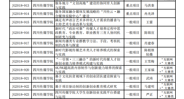 四川省教育厅关于公布四川省2018-2020年高等教育人才培养质量和教学改革立项名单的通知