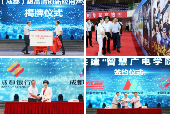 国家广电总局广播电视科学研究院、四川省广播电视局和四川传媒学院签署协议,共建智慧广电学院,创新打造全国领先的智慧广电新技术新应用新业态研究和广电产学研用一体的人才培训基地。成都银行与成都影视硅谷集团有限公司签署金融支持智慧广电产业发展暨首批贷款协议落地协议,全力支撑四川智慧广电产业高质量发展。成都市文化广电旅游局围绕全力推动智慧广电综合实验区建设、省广电网络龙泉驿分公司围绕积极参与智慧广电实验区建设、成都影视硅谷集团公司围绕推动中国(成都)超高清创新应用产业基地发展作交流发言。