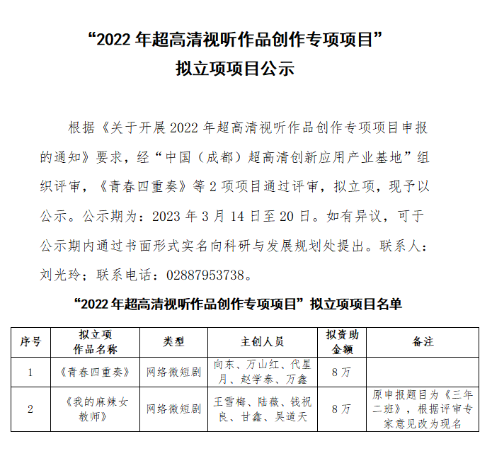 “2022年超高清视听作品创作专项项目”拟立项项目公示